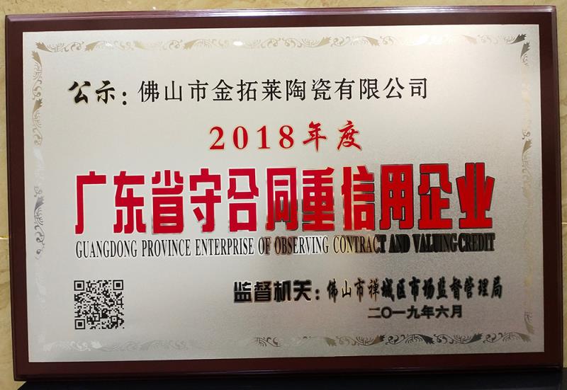 熱烈祝賀91香蕉视频在线下载陶瓷磚被獲評“廣東省守合同重信用企業”
