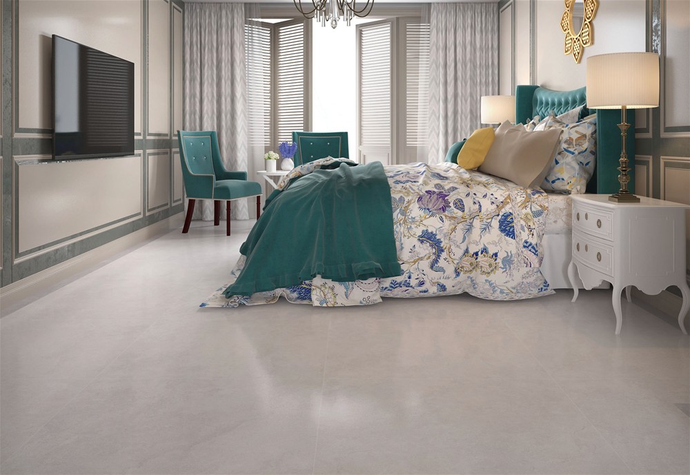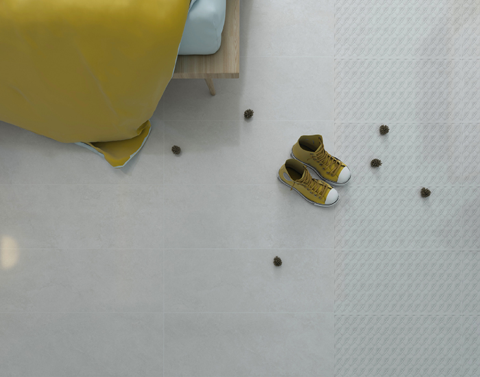 白色的表麵素雅而寧靜,灰色線條橫跨其中,自然而純粹,色澤素淨大方,光感柔和自然,似乎是將一層薄薄的絲綢印刻在瓷磚的表麵,縷縷輕絲纏繞,觸感舒適細膩,帶來如綢緞般絲滑體驗。